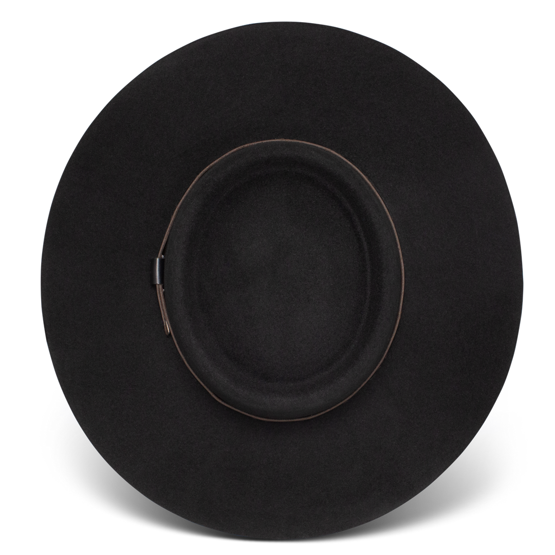 Leave them starstruck with the Cosmic Cowgirl Hat in Black. This pert, stylish wool hat comes in a 3 3/4" flat brim with a self-assured 3 3/4" telescope crown. The crown bears an off-center Charlie 1 Horse brand logo, while the black hatband features a five-point star design in white. The Cosmic Cowgirl’s dark shading makes this a functional hat that can accommodate a range of styles, skin tones, and fashion choices, all while sustaining a glamorous, center-of-the-universe quality.