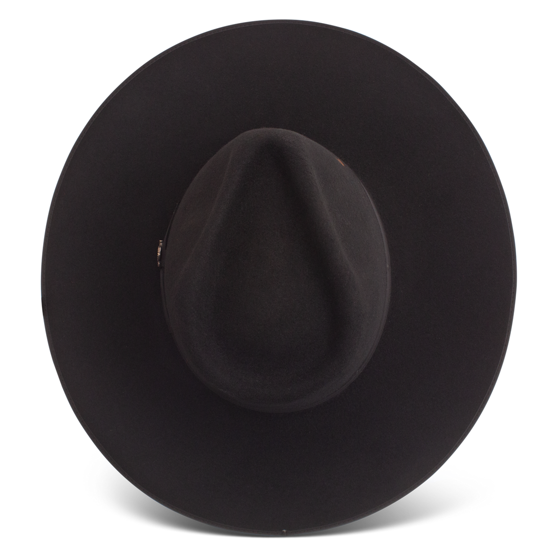 Chic, sleek, and self-assured, the Desert Drifter knows how to make a killer first impression. Part of our Rambler Collection, this hat comes in a 3 3/4" flat brim with a 4 3/8” pinch-front crown. The brim is bound for extra edge, while a matching black hatband with an understated Charlie 1 Horse pendant lends to the Desert Drifter’s mystique. The sweatband is made of high-quality leather. The Desert Drifter supports a variety of looks, from classic country to West Texas rock star.